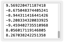 When the mouse pointer is over the white area of a plot, the x and y coordinates of the mouse location appear. (Note that the mouse location might not correspond exactly to any actual data points in the plot. If you need to know the exact coordinates of plotted points, use the Export Plot menu item and inspect the resulting file in another program.)